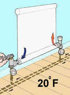Fit the radiator thermometers to the flow and return. Turn off the lockshield valve then open it gradually again until the difference between the two thermometers is about 20 degrees Fahrenheit (or 10°C).