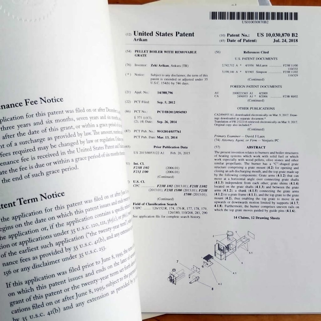 Our patent application is approved in USA. We are the only boiler company in Turkey to posses a U.S. patent as of today.
